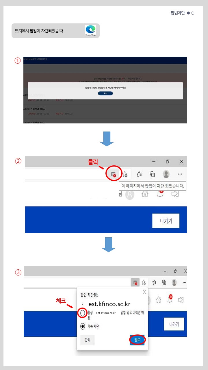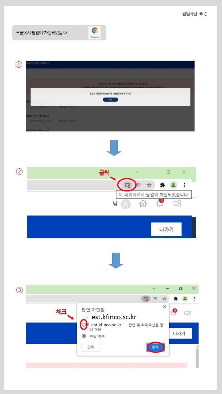 | Q. | 팝업이 차단되었을 때 어떻게 하나요? |