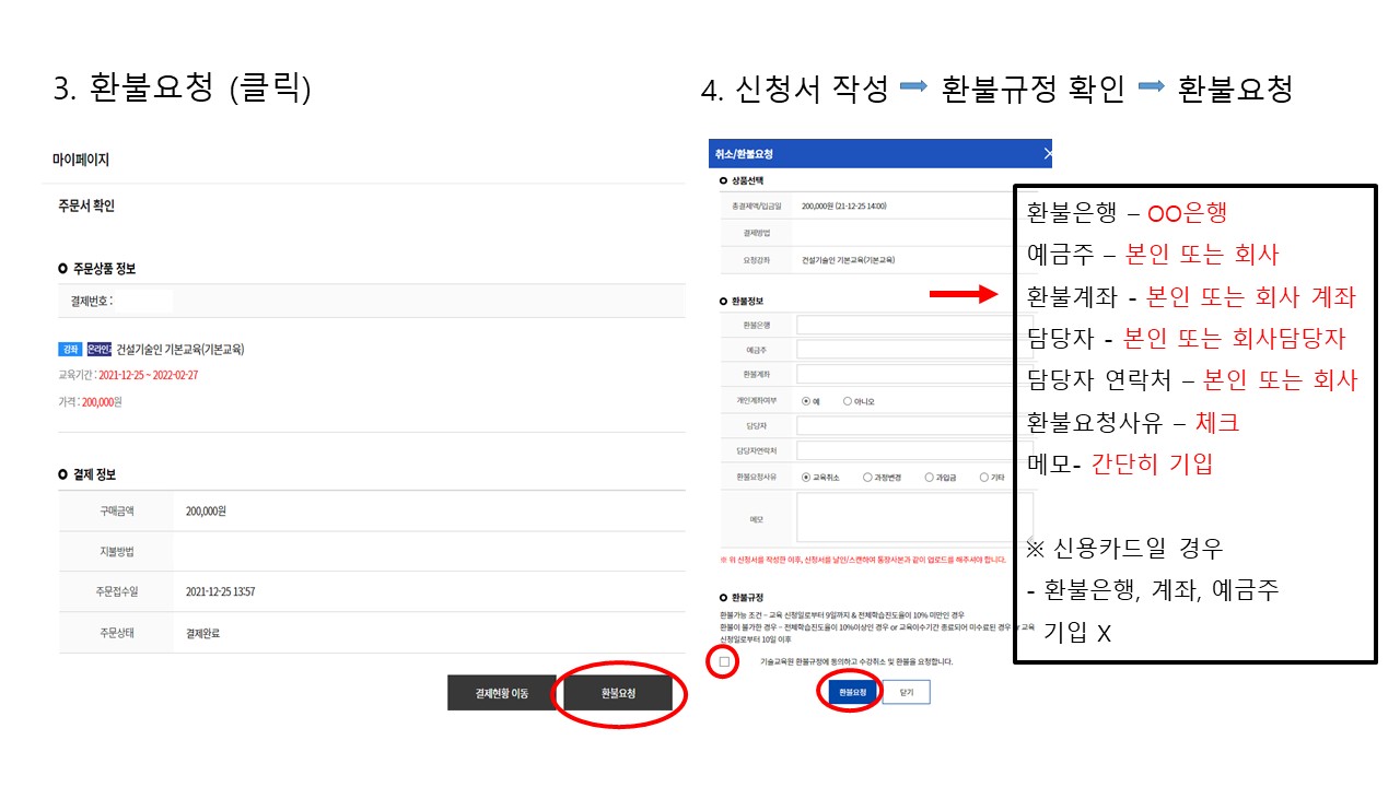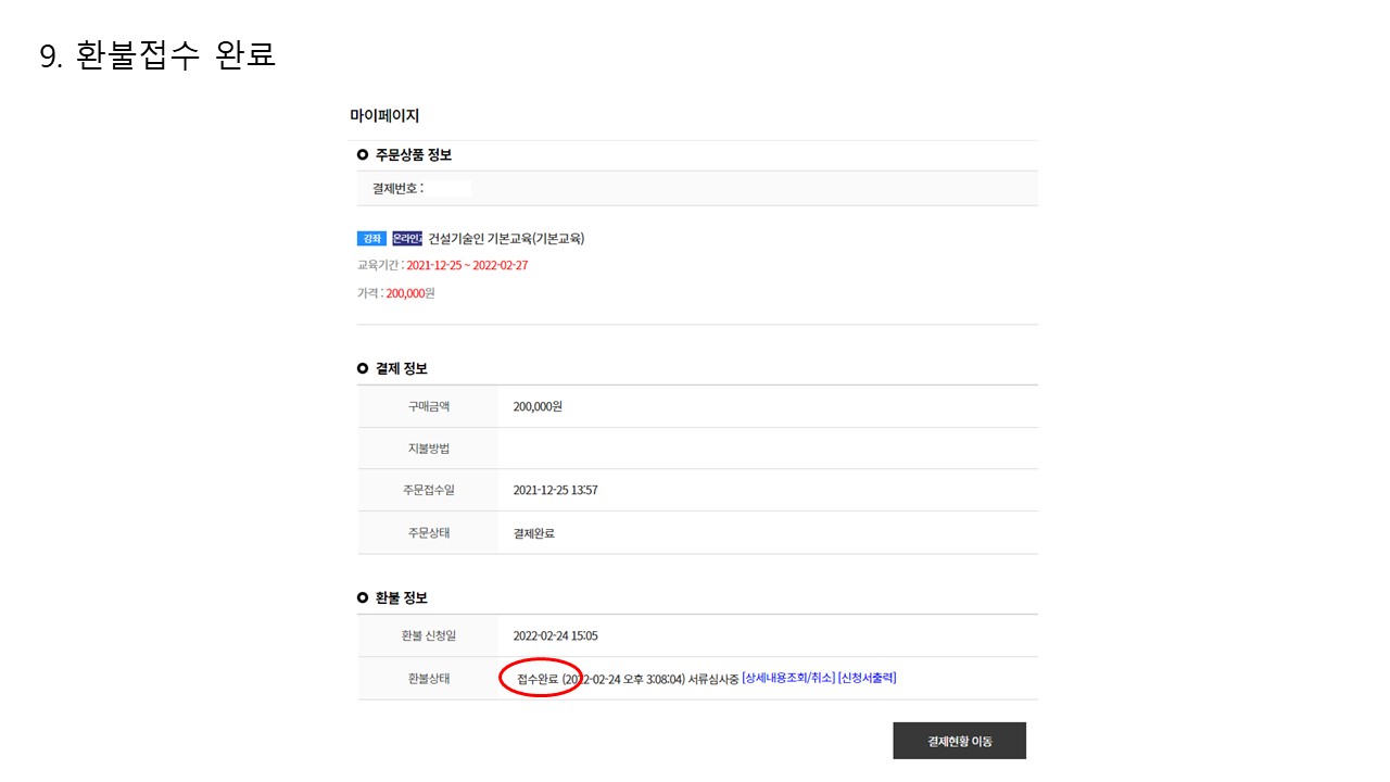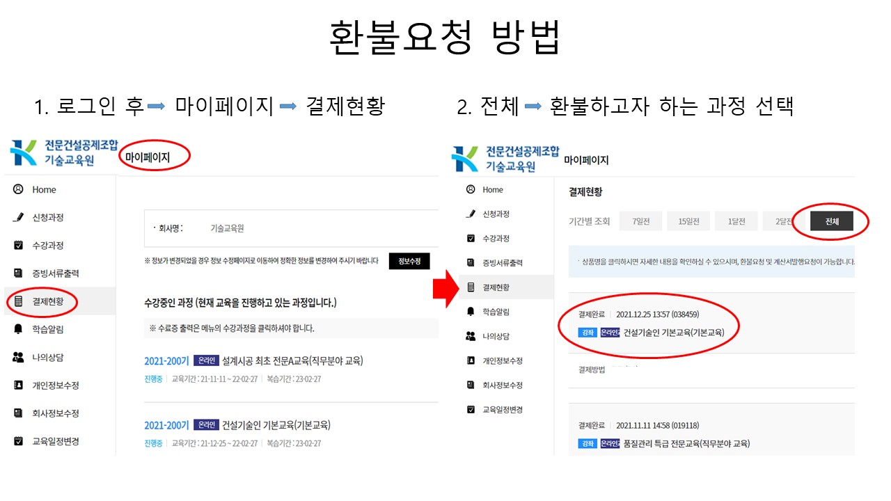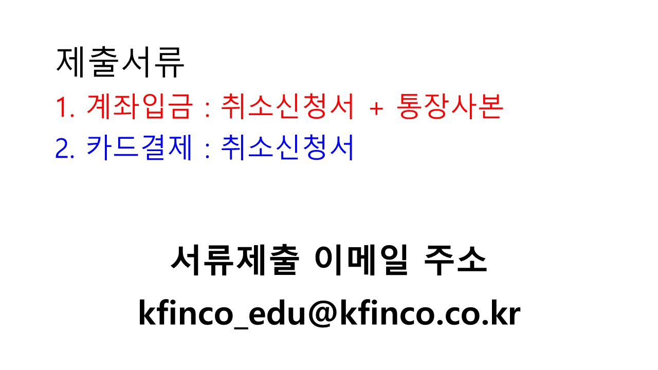 환불규정 : 마이페이지에서 환불신청 가능 - 교육신청일로 부터 9일이내, 전체 학습 진도율이 10%미만일 경우 |